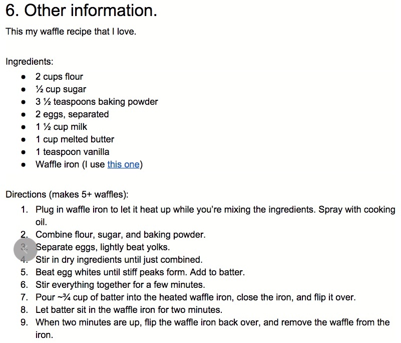 玉米饼表情的申请者在个人简介里不仅提出自己喜欢品尝和制作,甚至给出了自己最爱的餐厅来表明自己对玉米饼的痴迷。而华夫饼的申请者更直接,在文末附上了自己最爱的华夫饼食谱。