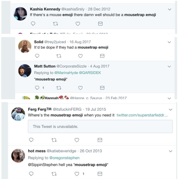 申请人列举了社交网站上需要捕鼠夹的帖子。丨L2/19‑144, unicode.org