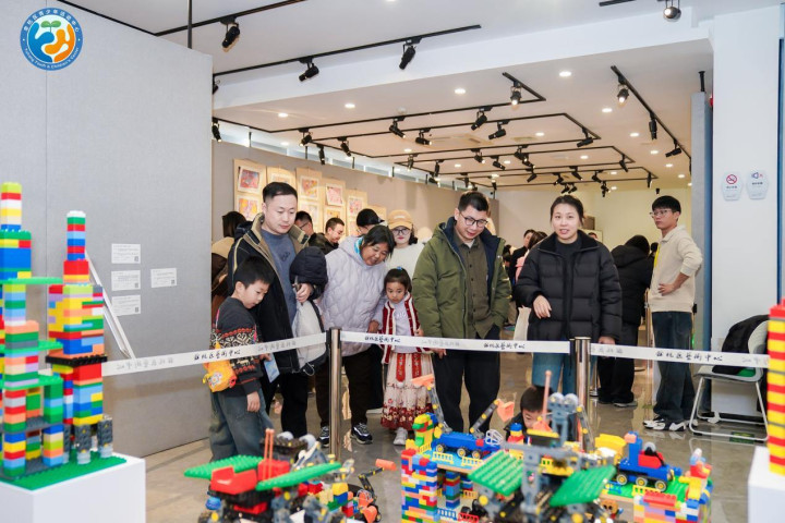 本次展览以“时光印记·未来对话”为核心主题,分为“历史回响”“世界视野”“未来畅想”三大展区,共展出作品五百余件,是2025年秋季学期十个“家门口青少年宫”所有美术学员的优秀作品展示。作品形式丰富,涵盖绘画、陶艺、乐高模型、黏土作品等,既有对传统文化元素的童趣诠释,也有对现实生活的细腻观察,更不乏对科技、生态、城市发展等未来议题的大胆构想。
