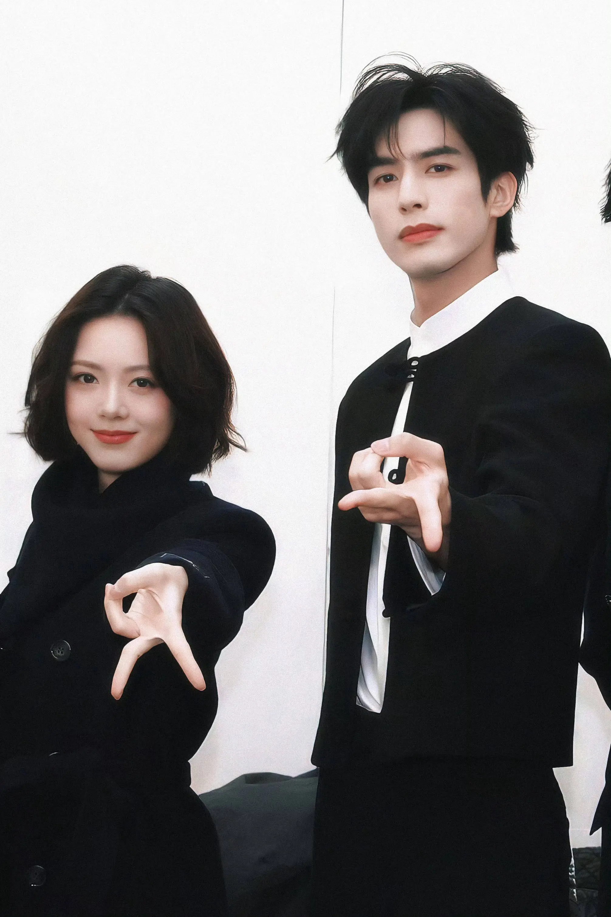 核心主创的座次安排更是暗藏玄机:导演和出品人稳坐C位,赵今麦身着蓝色大衣搭配齐整短发,娇俏地坐在主桌左侧,清淡妆容下的眼神满是不舍;宋威龙穿深灰色西装随性又帅气,一开始还和工作人员嬉笑打闹,状态松弛得像"林屿森本人线下营业"。最戳人的是张碧晨的惊喜现身,作为主题曲《似我似你》的演唱者,她冷艳妆容搭配利落中短发,演唱时闭眼投入的模样,瞬间把现场拉回剧里的名场面,还和赵今麦相视一笑、轻拍肩膀,默契互动让网友直呼"梦幻联动太好嗑"。