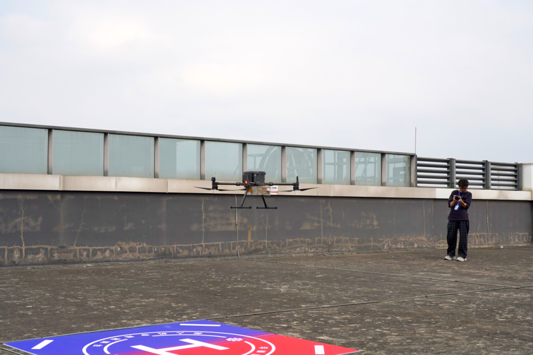在随后的楼顶观摩环节,无人机从B2栋楼顶起飞,1分钟内将应急物资精准投送至D1栋楼顶,模拟园区应急场景下的“分钟级”快速配送。