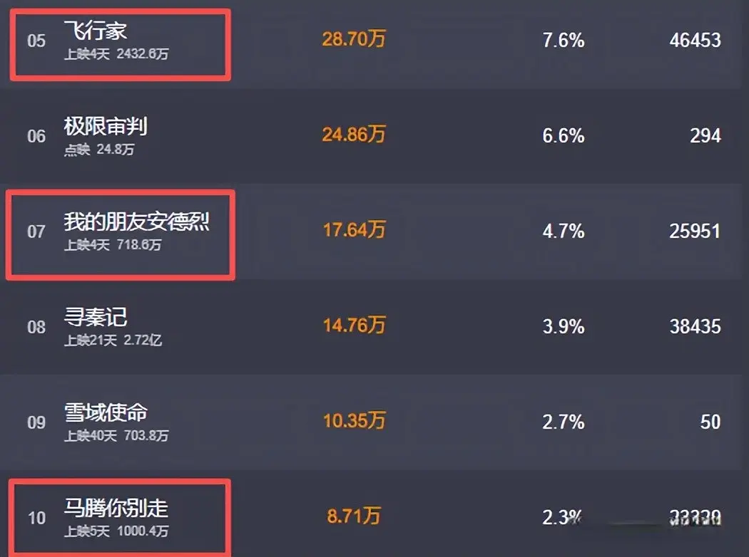 《飞行家》已经属于是矮子里拔高个的存在,4天有两千多万的票房。
