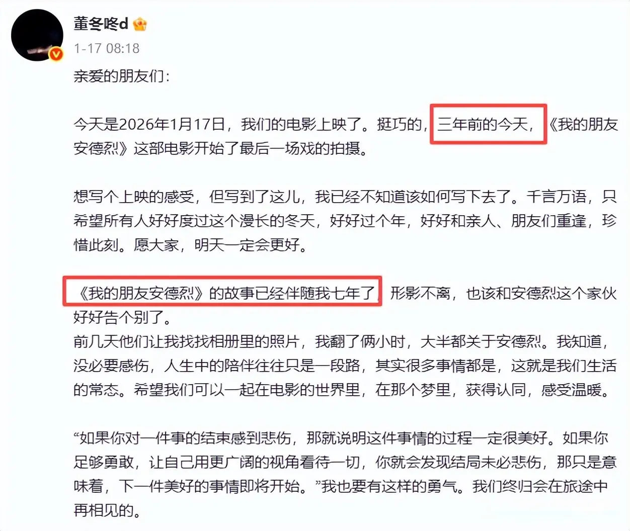 首先是他自己微博发的小作文,讲述了这个电影的创作过程。
