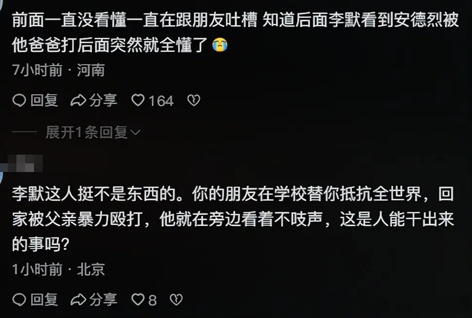 而刘昊然的李默,则感觉十分疲惫、躲避,显得很空洞。