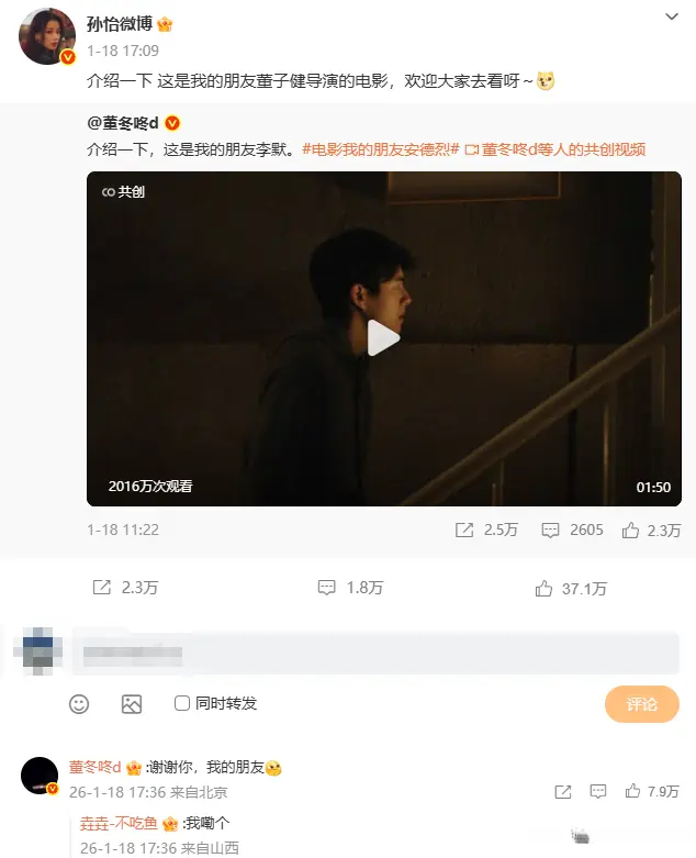 甚至为了宣传,连前妻孙怡都发微博了。
