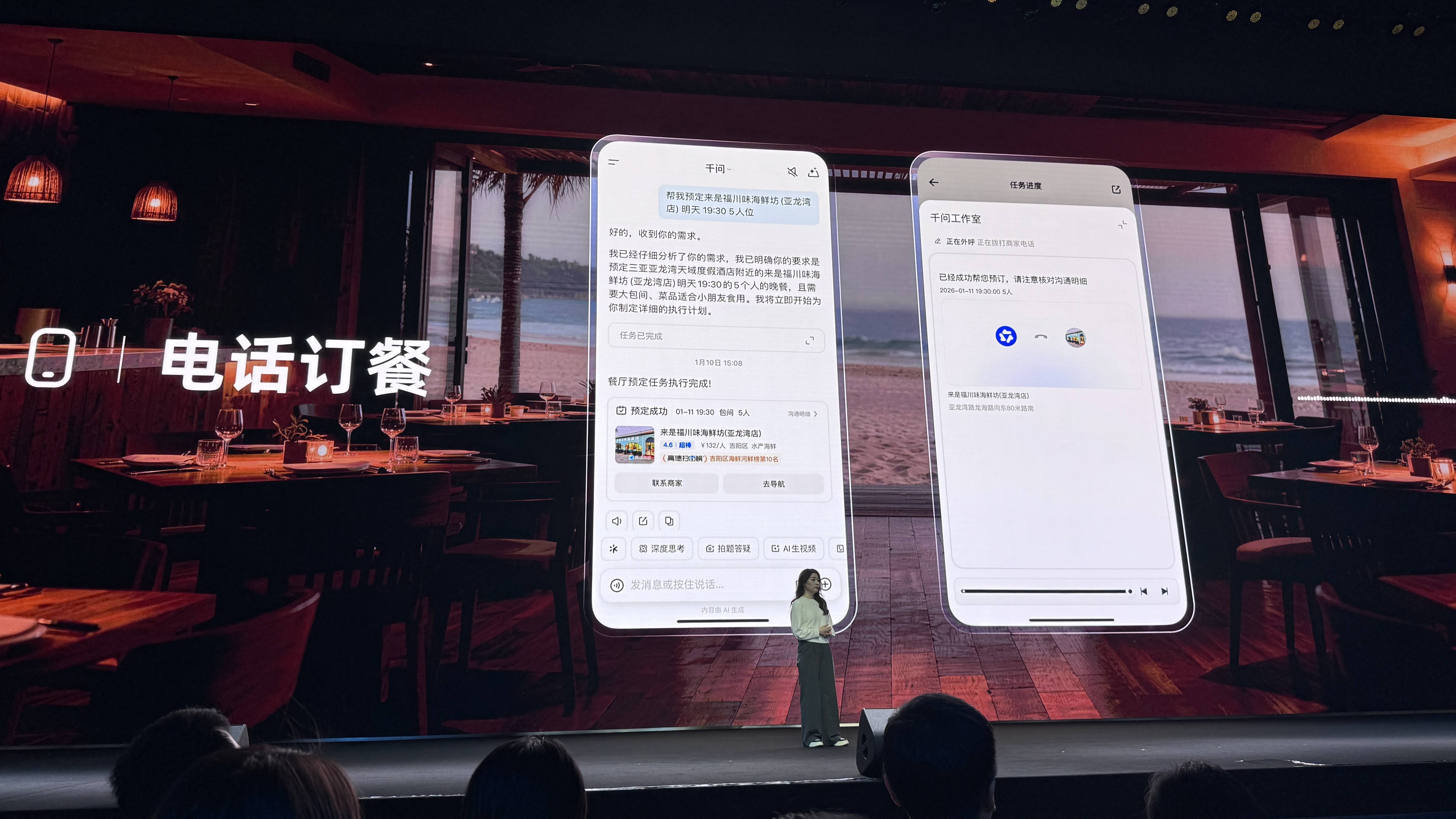 吴嘉称,千问App上线办事能力,这不仅是在线上数字世界帮大家办事,更是要进入物理世界,在生活环境中帮人们办事,形成AI办事的完整形态。