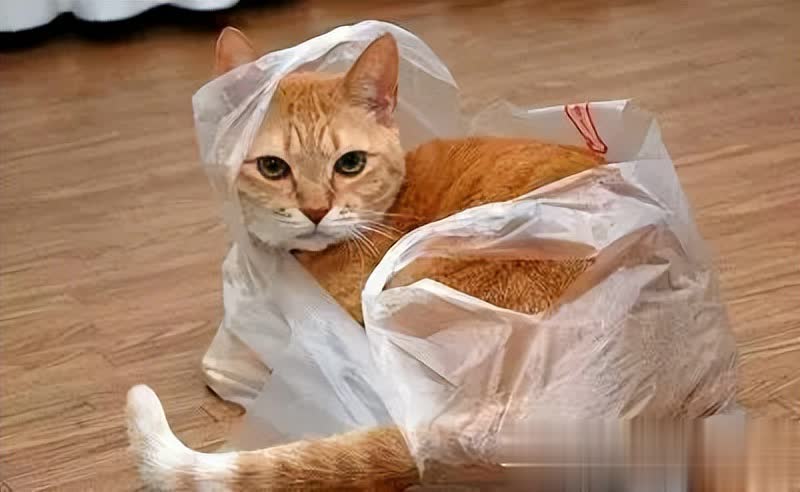 9、相信很多人在养猫都发现了,猫咪真的很喜欢塑料袋,只要看到塑料袋,就好像对它毫无抵抗力一样,直接往里面钻进去,在里面玩的不亦乐乎。